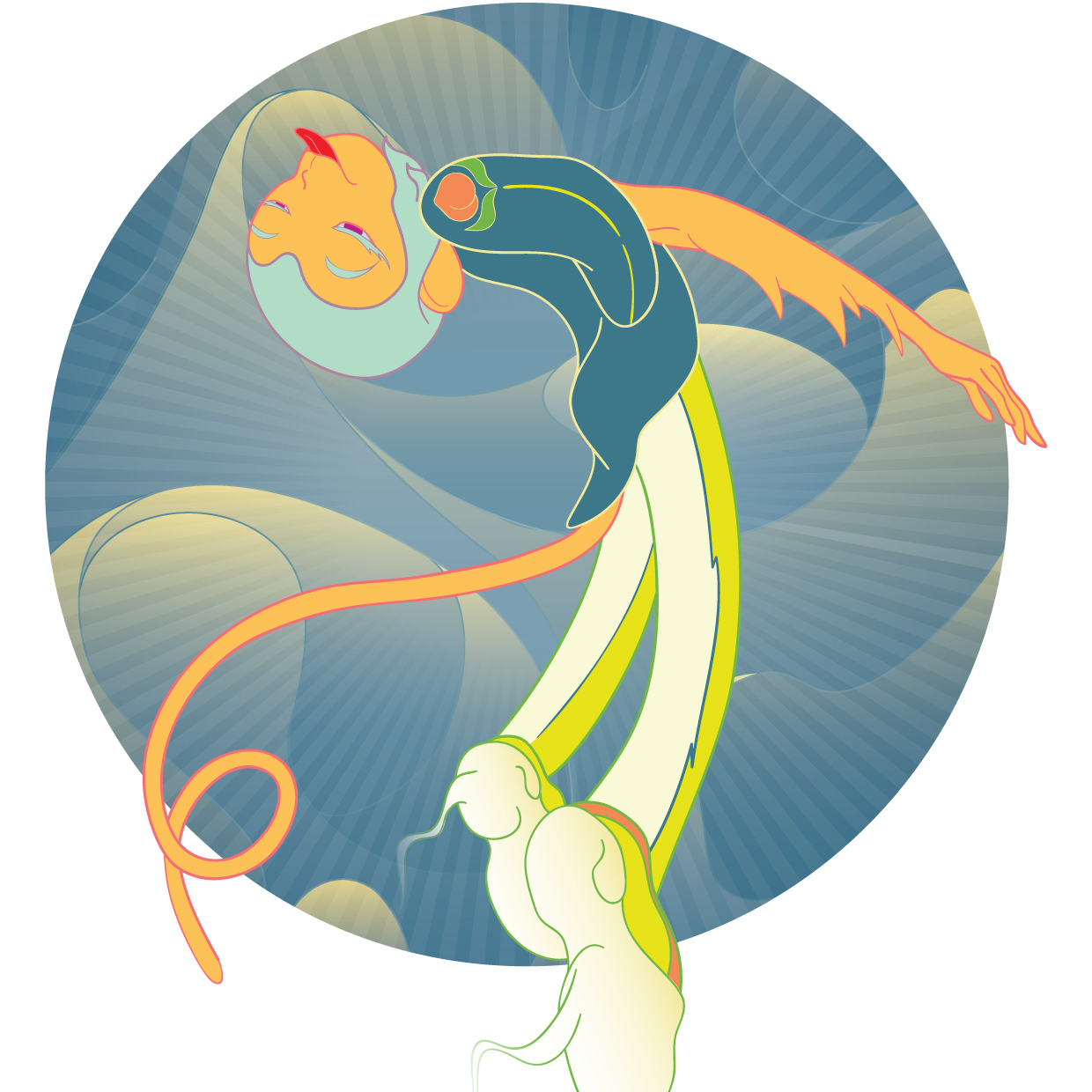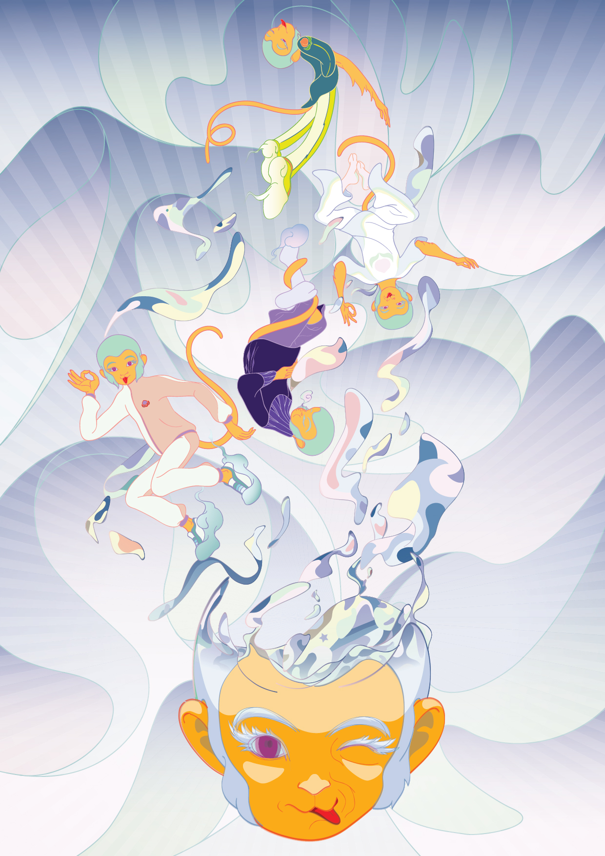 Fuu emerged in a dream: All the tricksters I have ever drawn pulled free from their sketch pages, and merged in a mass of flesh and light. Out of which, this cheeky creature was ejected and went on to cosplay other tricksters. He’s also my creative signature — the visual DNA that travels across formats when I work with brands.